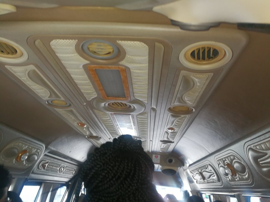 I kid you not. This is not a PVC ceiling from a house in Soweto, it’s the inside of a Toyota Quantum taxi.