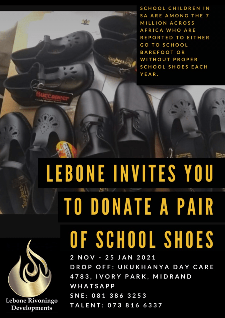 Looking ahead, we’re currently on a school shoes drive for this festive season in preparation for the new academic year. We are requesting people to donate brand new school shoes that we will ensure that they get to deserving learners from our communities. This will make their journey to school in 2021 a bit more comfortable and bearable.