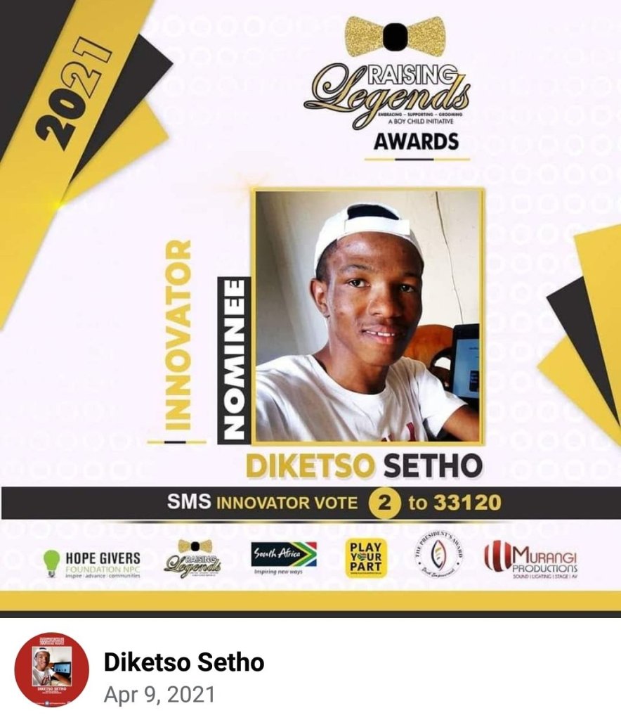 Your accolades, from being honoured as one of the Top 200 Young South Africans by Mail & Guardian in 2021, Top 15 young Geek of the year 2019, Raising Legends innovation recognition of 2021 amongst many others, boldly attest your incredible legacy that remains.